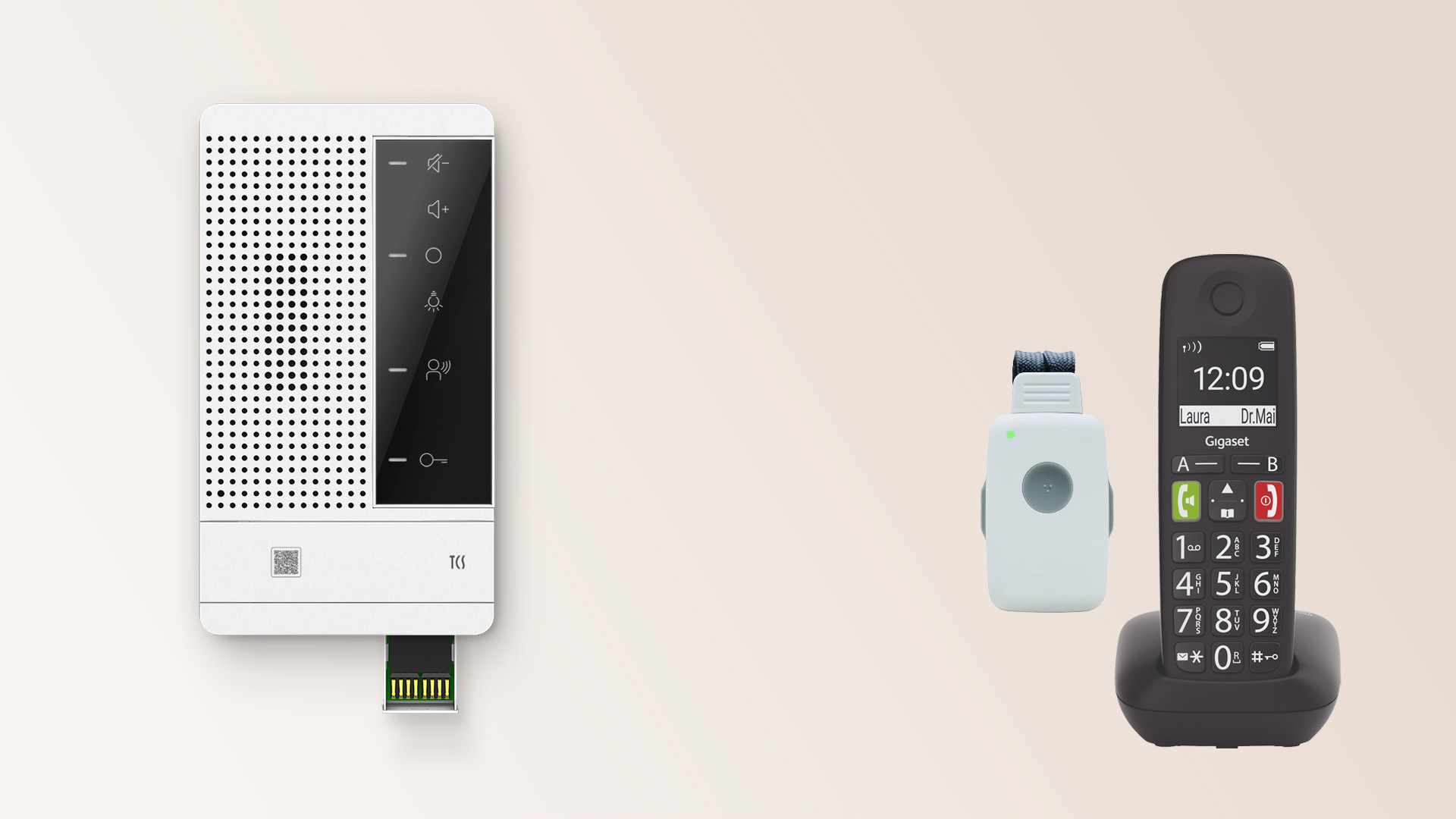 Assistenztelefon oder mobiles Bedienteil für mehr Barrierefreiheit: Steuern Sie Ihre Sprechanlage bequem vom Sofa, Krankenbett oder beim Gehen – ideal bei eingeschränkter Mobilität.